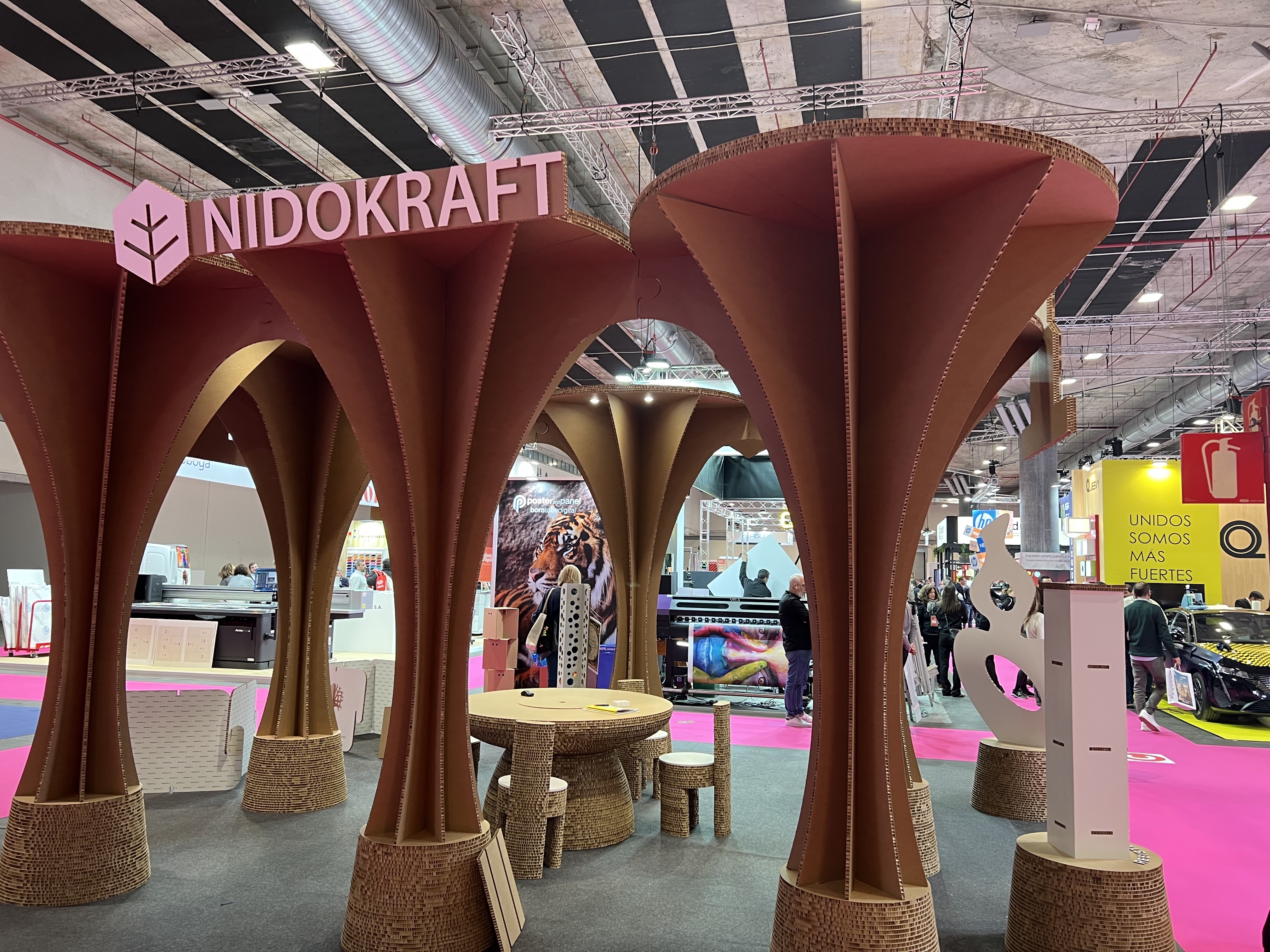 NIDOKRAFT, el cartón nido de abeja de PANELPAC, destaca por su versatilidad y sostenibilidad en proyectos de comunicación visual y ferias.